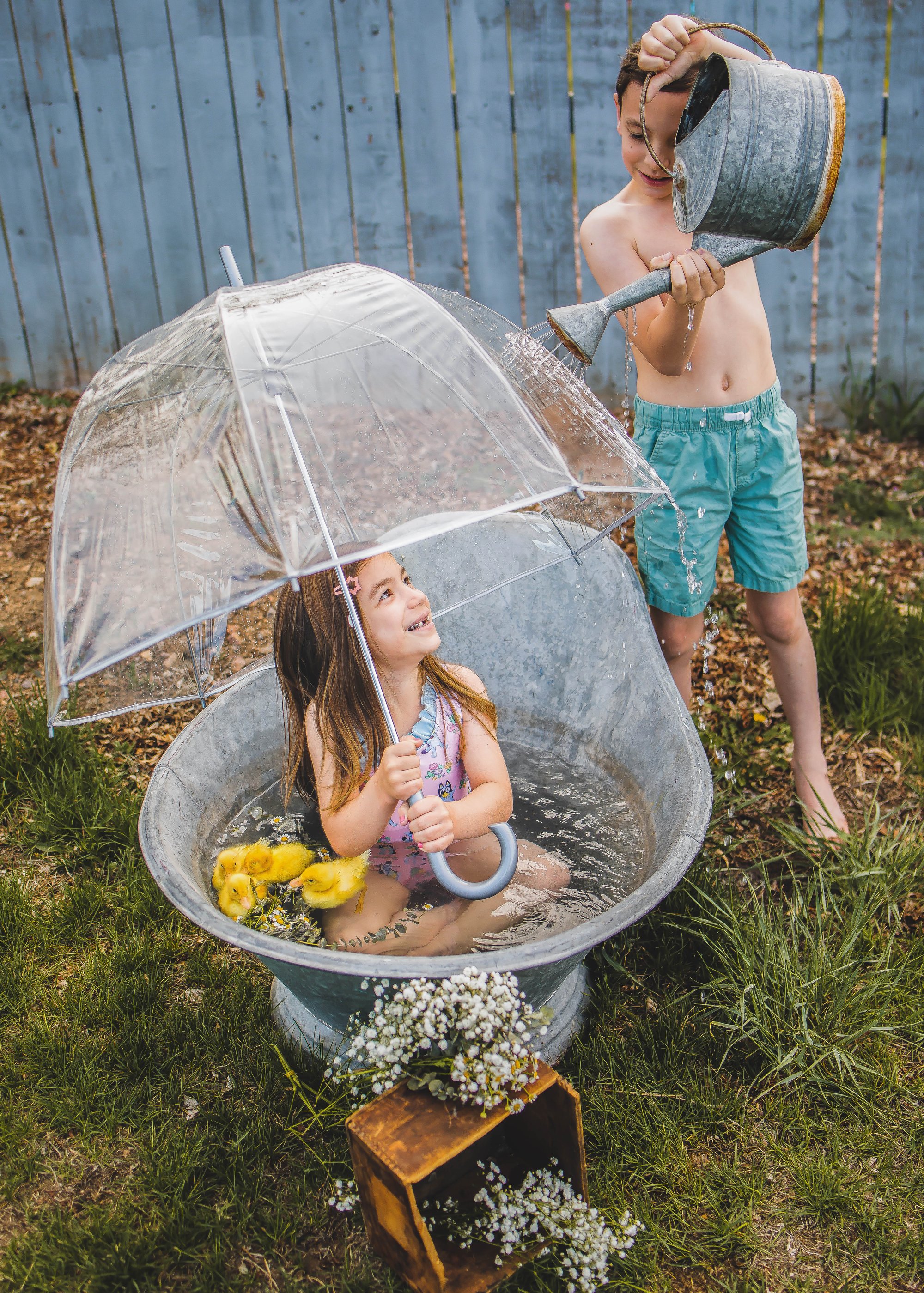 The kids had so much fun doing this last year I am so excited to do them again! Kids must be able to stably sit up on their own ! If they are in a diaper not potty trained please have a swim diaper on them. I do have a cover I can bring let me know if you want to use it ! For older kids a swim suit is perfect !